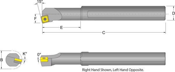 55597 S16T-SSKCR-4. Pos Square Boring Bar RH. Style K, 15DEG SCM_ 1/2 I.C.