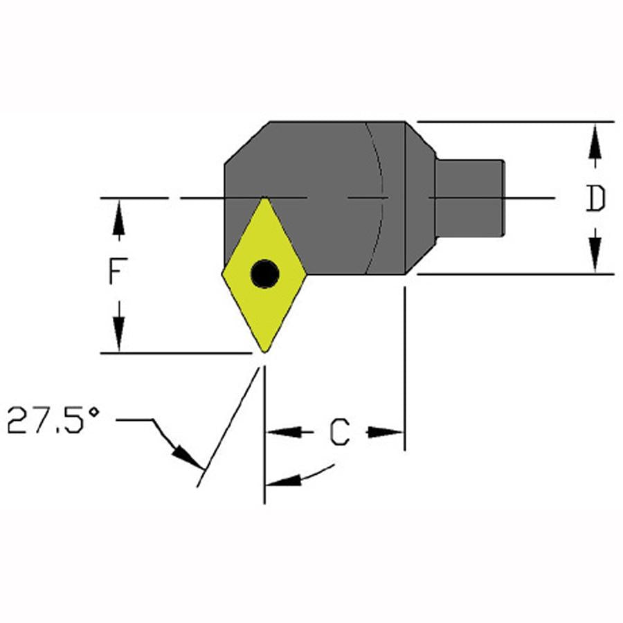 Modular 1.000" x 1.000" Boring Head 1.450" Min Bore to hold a Positive DCMT 32.51 at 27.5DEG Lead (Right Hand) Coolant Thru.