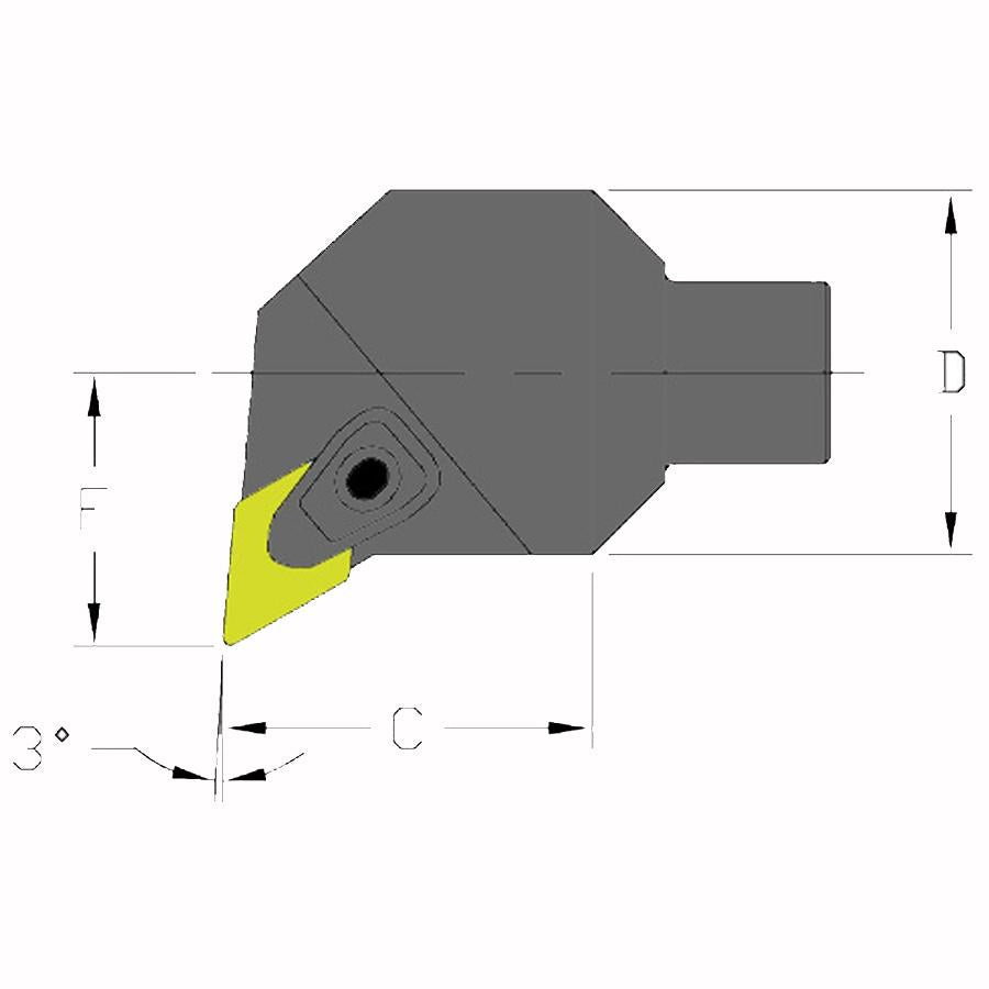 Modular 1.250" x 1.300" Pullback Clamp Boring Head 1.700" Min Bore to hold a Negative DNMG 432 at -3DEG Lead (Right Hand) Coolant Thru.