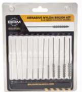 0.142 Hole Diameter x 0.156 Brush Diameter 1" Brush Length x 3" OAL x 0.055 Stem Diameter x 600 AO Abrasive Nylon Brush. Brushes come 12 to a pack, please order in quantities of 12