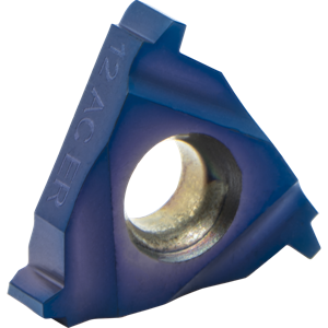 #Edges:3, #Teeth:1, CentrLn to Cut Edge:0.04"/1.1mm, Cut Edge to Matl:0.05"/1.2mm, EX-RH, Grade:BLU, Has Chipbrkr:Breaking Corners, IC:(3/8)", Insert Size:16mm, Matl:Carbide, Pitch:12.00 TPI, Thread Form:ACME