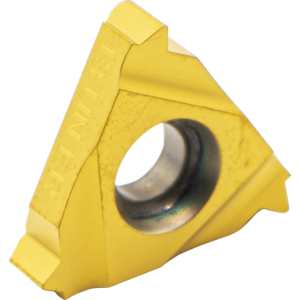 Hill Inventory: 0#Edges:3, #Teeth:1, CentrLn to Cut Edge:0.04"/1.0mm, Cut Edge to Matl:0.05"/1.3mm, EX-RH, Grade:P25C, IC:(3/8)", Insert Size:16mm, Matl:Carbide, Pitch:13.00 TPI, Thread Form:UN, w/o Chipbreaker