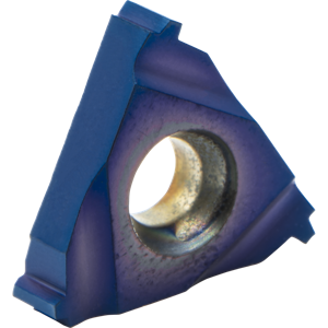 Hill Inventory: 0#Edges:3, #Teeth:1, CentrLn to Cut Edge:0.04"/0.9mm, Cut Edge to Matl:0.04"/1.0mm, EX-RH, Grade:BLU, Has Chipbrkr:Breaking Corners, IC:(3/8)", Insert Size:16mm, Matl:Carbide, Pitch:16.00 TPI, Thread Form:ACME