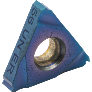 Hill Inventory: 0#Edges:3, CentrLn to Cut Edge:0.03"/0.7mm, Cut Edge to Matl:0.02"/0.4mm, EX-RH, Grade:BLU, IC:(3/8)", Insert Size:16mm, Matl:Carbide, Thread Form:UN