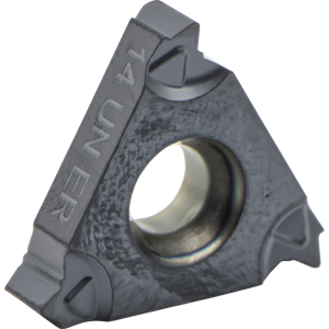 Hill Inventory: 0#Edges:3, CentrLn to Cut Edge:0.04"/1.0mm, Cut Edge to Matl:0.05"/1.2mm, EX-RH, Grade:BMA, IC:(3/8)", Insert Size:16mm, Matl:Carbide, Pitch:14.00 TPI, Thread Form:UN, w/Chipbreaker