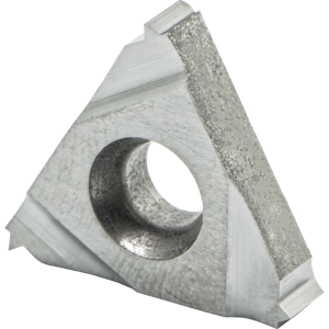 #Edges:3, #Teeth:1, CentrLn to Cut Edge:0.03"/0.7mm, Cut Edge to Matl:0.02"/0.6mm, IC:(5/32)", IN-RH, Insert Size:6mm, Matl:Carbide, Pitch:27.00 TPI, Thread Form:NPTF, w/o Chipbreaker