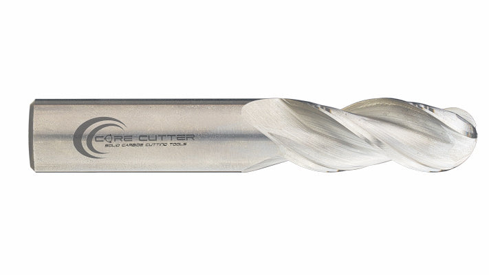 Core Cutter 1/4" Diameter x 1/4" Shank Diameter x 1-1/4" LOC x 3" OAL x 3 Flute BALL Uncoated for Aluminum & Plastics