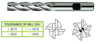 1 x 1 x 4 x 6-1/2 - 4 FLUTE LONG LENGTH CENTER CUT 8% COBALT, YG, HSS/Cobalt End Mill, Standard Cobalt & HSS, 1" Diameter, 4" LOC, 4 Flute, 6-1/2" OAL, TIN Coated