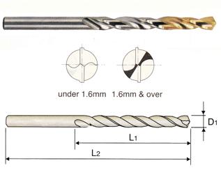 DLGP195010 YG 1mm Diameter x 12mm LOF x 34mm OAL HSS-Co5% JOBBERS LENGTH STRAIGHT SHANK GOLD-P DRILLS