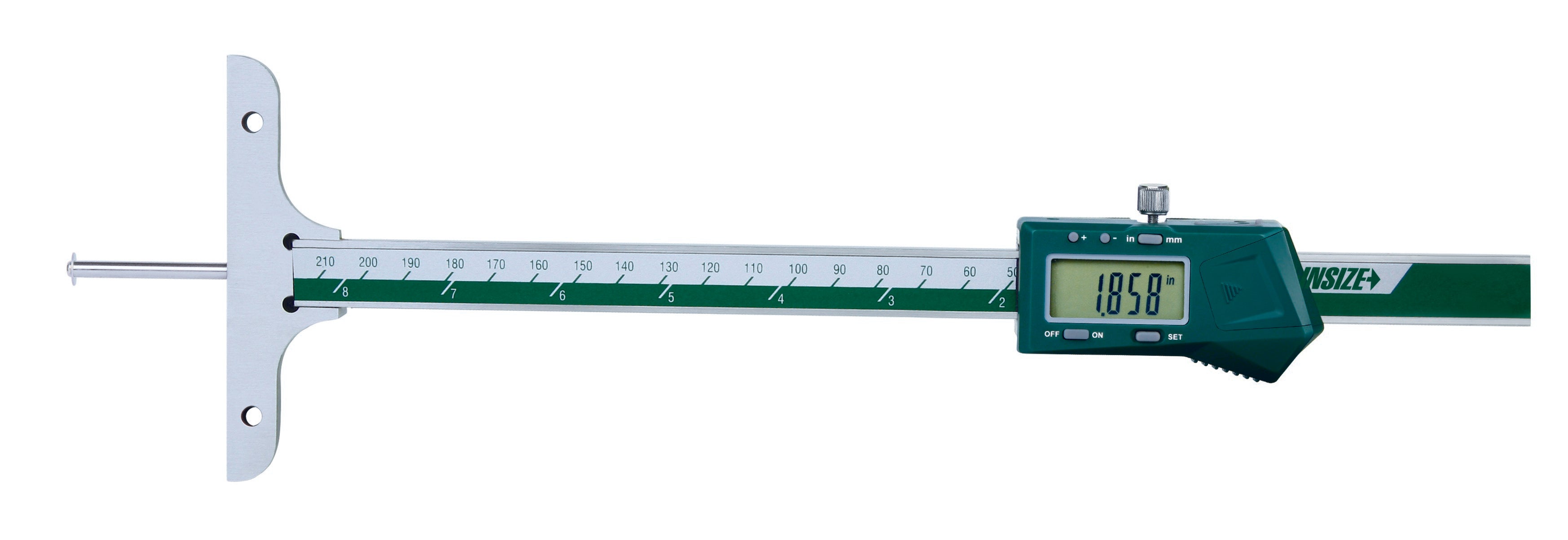 ELECTRONIC DEPTH GAGE WITH ROUND DEPTH BAR, 0-8"/0-200mm