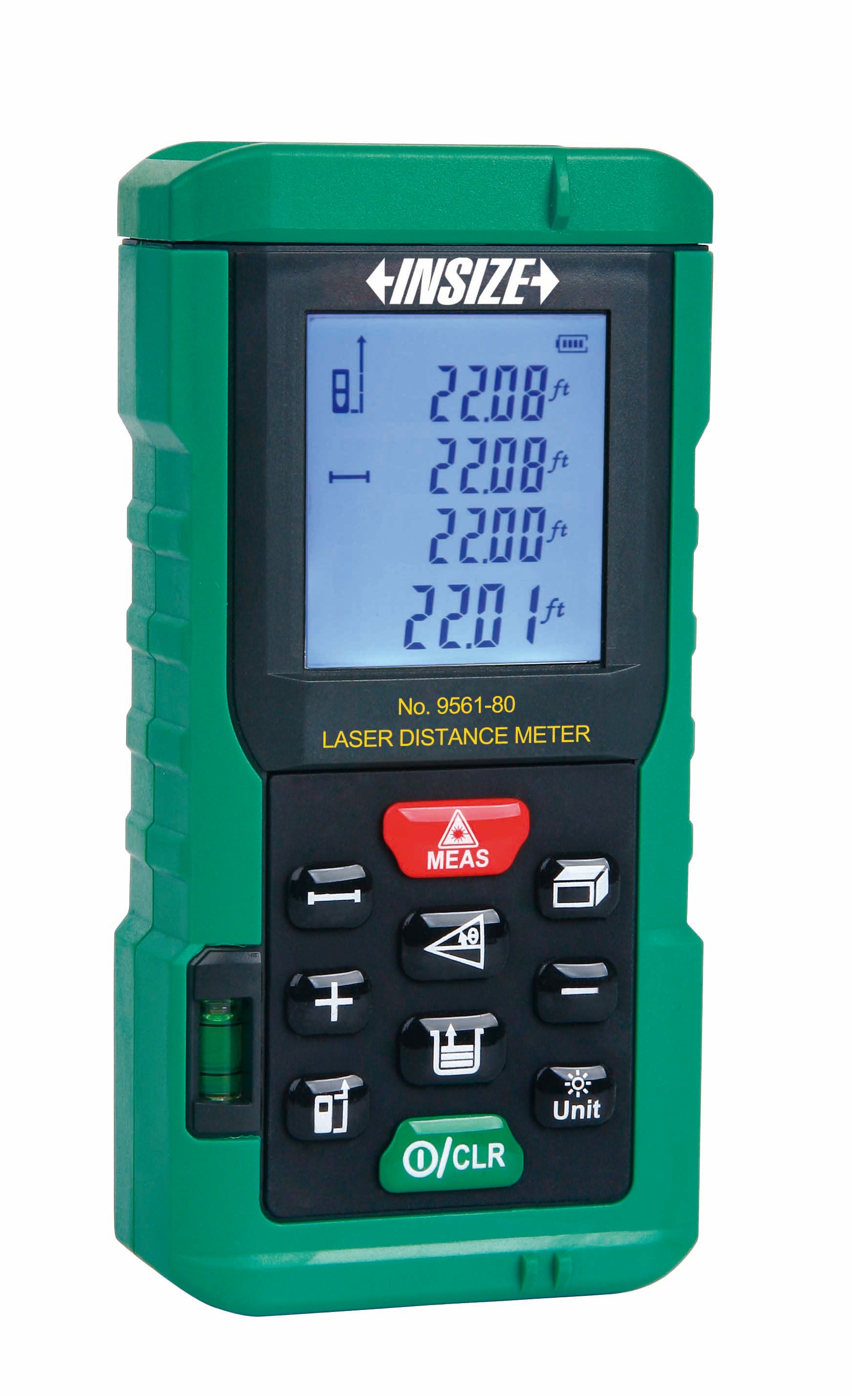 Insize LASER DISTANCE METER, 0.05 ~ 80m Large display with backlight. Unit: m, ft, in. Distance, area, volume and height measurement. Continuos measuring mode to track maximum and minimum value. Memory of 99 measurement values.