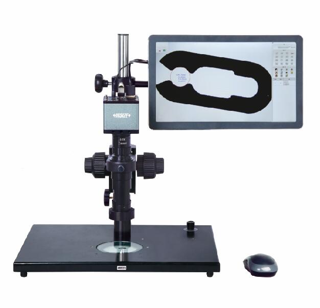 Insize ISD-A100-U VISION MEASURING SYSTEM. Objective 0.75X~5X (zoom). Auxiliary objective 1X(included). Focus distance 3.23"View field (diagonal length) .05~.30". Magnification (19" widescreen display) 44X~280XAuxiliary objective 0.5X(included). Focus distance 6.89". View field (diagonal length) .09~.59"Magnification (19" widescreen display) 22X~140XMeasures small workpiece (less than .59") easily and accurately.