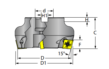 65226 D15X-100-TD11-050 Dorian Tool 15DEG Indexable DoveDex Cutter. 1/2" Shank, 1" Cut Dia