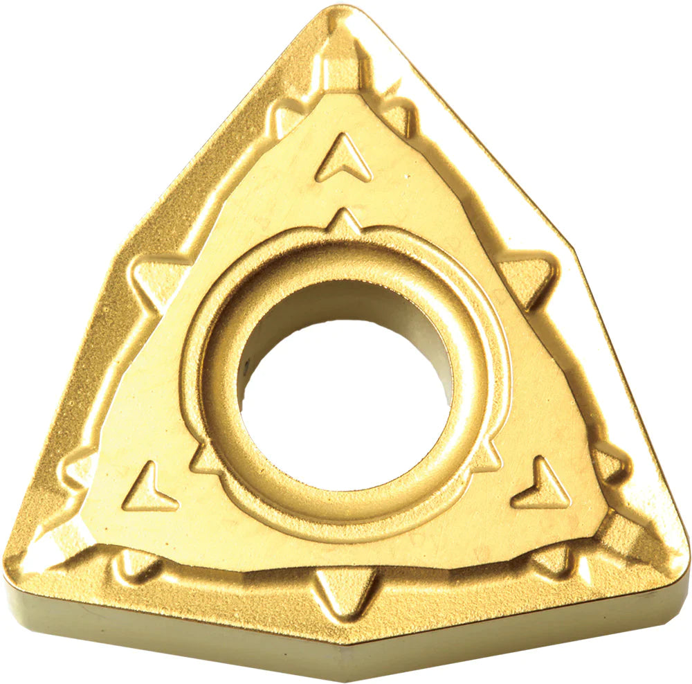 Hill Inventory: 0Kyocera WNMG 431WP CA5505 Grade CVD Carbide, 0 Degree, Trigon, Negative Rake Angle, Neutral Turning Insert for Light Interruption and Finishing in (P) Carbon/Alloy Steel and (K) Gray Cast Iron, (K) Nodular Cast Iron. Negative Turning Inserts with .015 Radius. Inserts come 10 to a Pack, Please Order in Quantities of 10