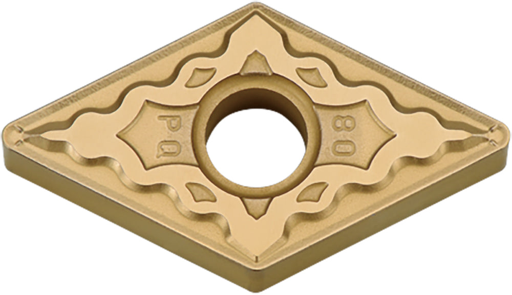 Kyocera DNMG 431PQ CCX Grade CVD Cermet, 0 Degree, Diamond, Negative Rake Angle, Neutral Turning Insert for Continuous and Finishing in (P) Carbon/Alloy Steel and (K) Gray Cast Iron, (K) Nodular Cast Iron