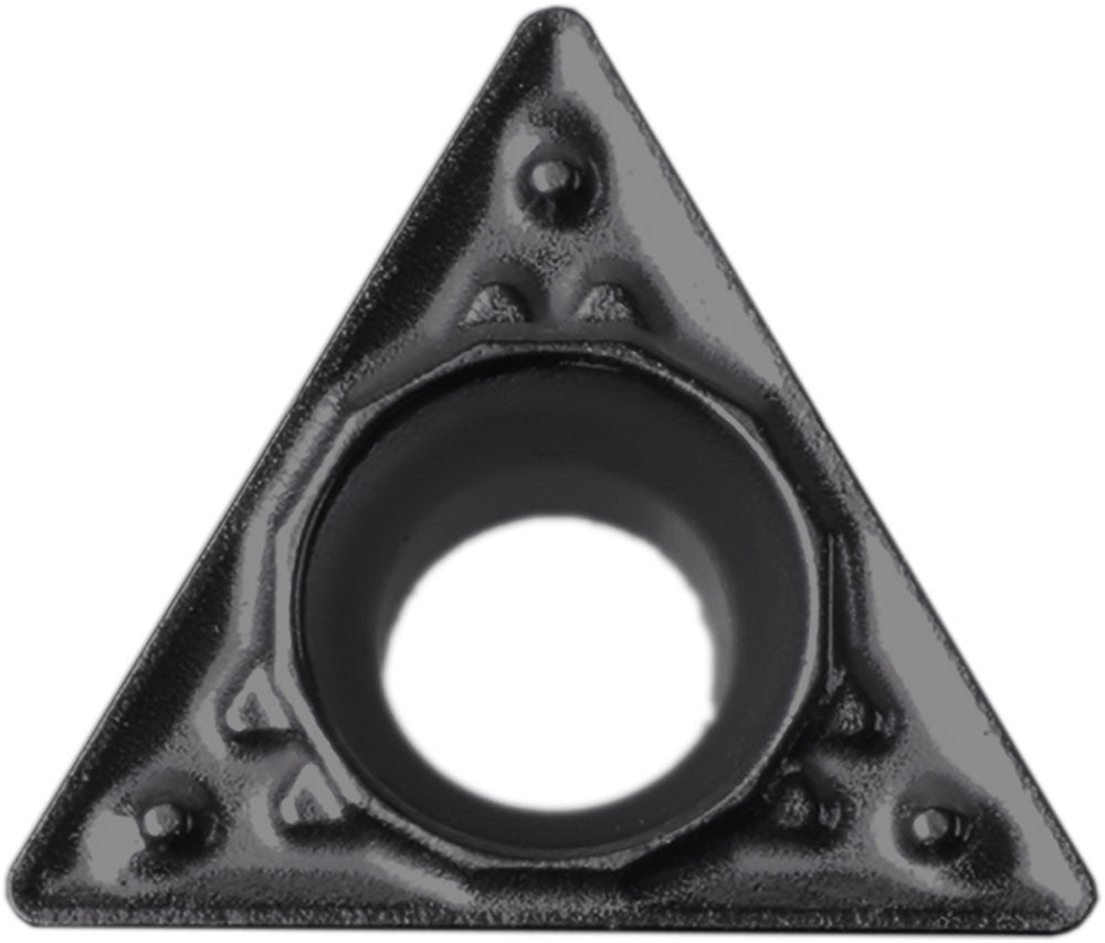 Triangle Insert 7DEG Positive Clearance Angle Chipbreaker & ISO Countersink one side, with hole .156" Inscribe Circle Size 5/64" Thickness .008" Corner Radius UD51 Grade. Factory Stock (MI)
