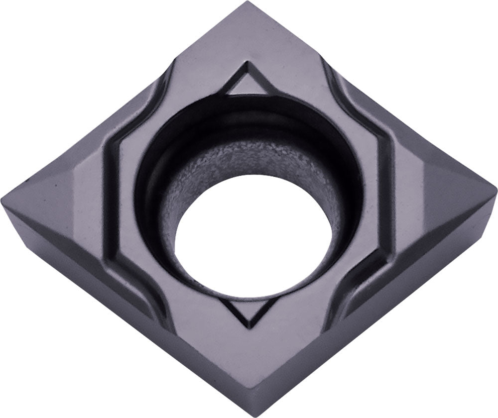 Kyocera DCMT 3251PP CCX Grade CVD Cermet, 7 Degree, Diamond, Positive Rake Angle, Neutral Turning Insert for Continuous and Finishing in (P) Carbon/Alloy Steel and (K) Gray Cast Iron, (K) Nodular Cast Iron