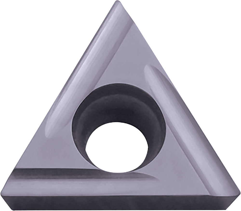 Triangle Insert 7DEG Positive Clearance Angle Chipbreaker & ISO Countersink one side, with hole .156" Inscribe Circle Size 5/64" Thickness .008" Corner Radius UD51 Grade. Factory Stock (MI)