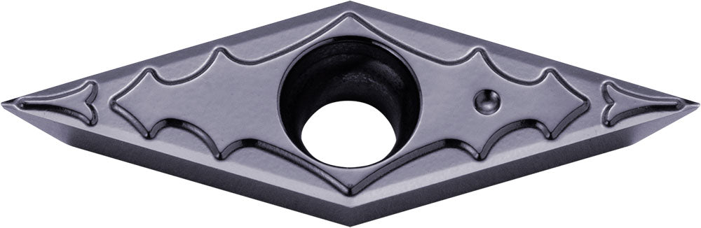 Kyocera VBMT 3305VF CCX Grade CVD Cermet, 5 Degree, Diamond, Positive Rake Angle, Neutral Turning Insert for Continuous and Finishing in (P) Carbon/Alloy Steel and (K) Gray Cast Iron, (K) Nodular Cast Iron