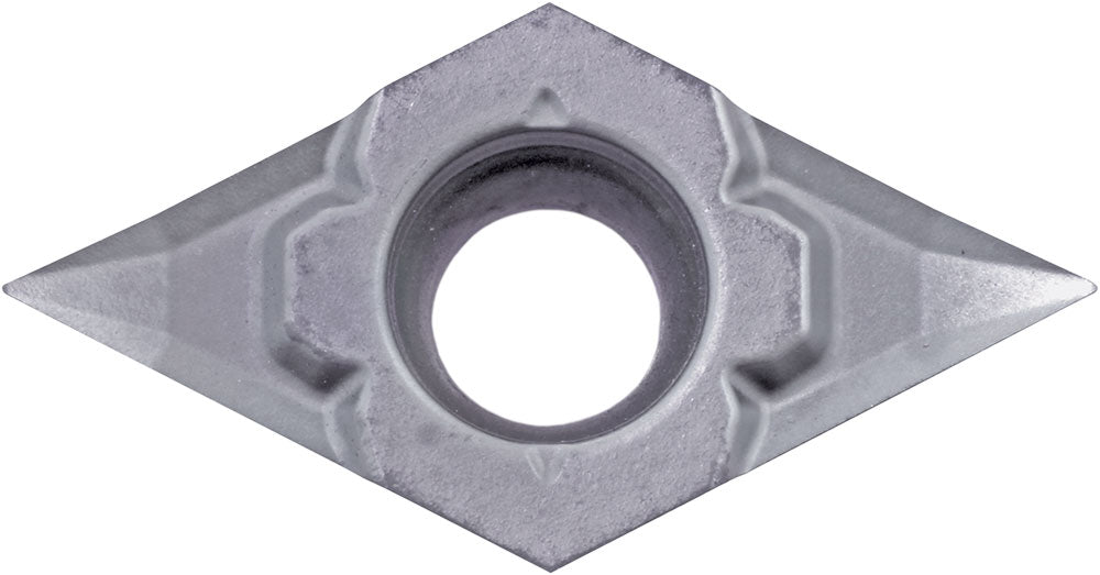 Kyocera VBMT 3305VF CCX Grade CVD Cermet, 5 Degree, Diamond, Positive Rake Angle, Neutral Turning Insert for Continuous and Finishing in (P) Carbon/Alloy Steel and (K) Gray Cast Iron, (K) Nodular Cast Iron