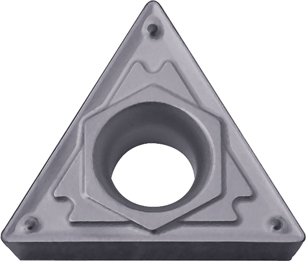 Triangle Insert 7DEG Positive Clearance Angle Chipbreaker & ISO Countersink one side, with hole .156" Inscribe Circle Size 5/64" Thickness .008" Corner Radius UD51 Grade. Factory Stock (MI)