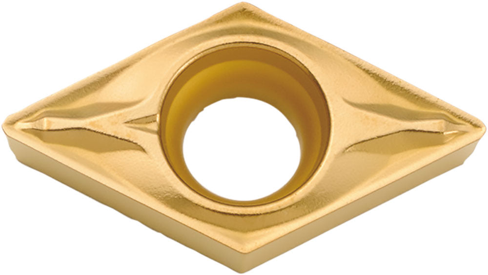 Kyocera DCMX 32505WP PV720 Grade PVD Cermet, 7 Degree, Diamond, Positive Rake Angle, Neutral Turning Insert for Light Interruption and Finishing in (P) Carbon/Alloy Steel