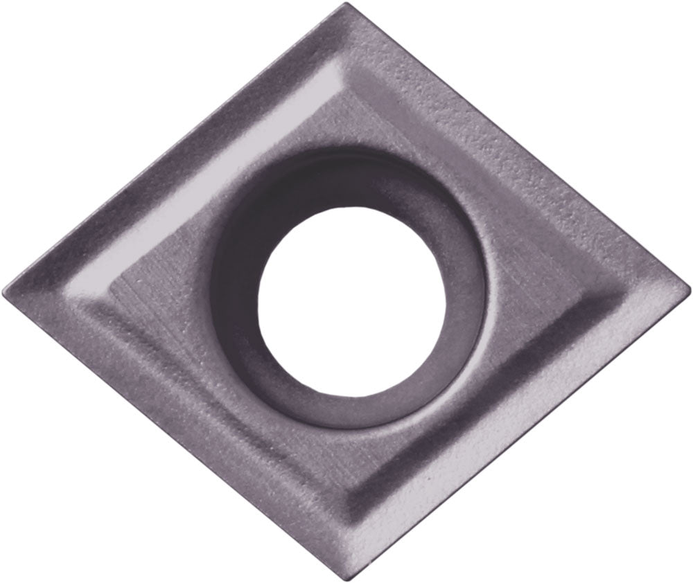 Kyocera DCMT 3251PP CCX Grade CVD Cermet, 7 Degree, Diamond, Positive Rake Angle, Neutral Turning Insert for Continuous and Finishing in (P) Carbon/Alloy Steel and (K) Gray Cast Iron, (K) Nodular Cast Iron