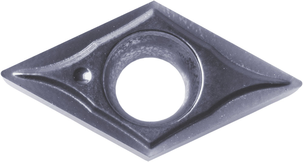 Kyocera VBMT 3305VF CCX Grade CVD Cermet, 5 Degree, Diamond, Positive Rake Angle, Neutral Turning Insert for Continuous and Finishing in (P) Carbon/Alloy Steel and (K) Gray Cast Iron, (K) Nodular Cast Iron