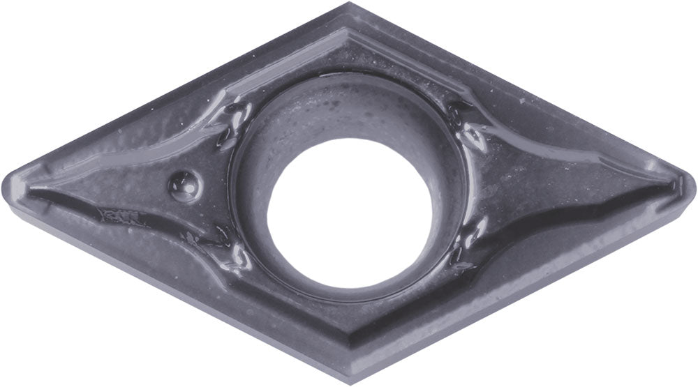 Kyocera VBMT 3305VF CCX Grade CVD Cermet, 5 Degree, Diamond, Positive Rake Angle, Neutral Turning Insert for Continuous and Finishing in (P) Carbon/Alloy Steel and (K) Gray Cast Iron, (K) Nodular Cast Iron