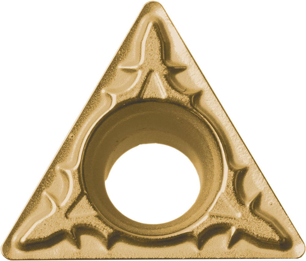 Kyocera TPMT 221XP CCX Grade CVD Cermet, 11 Degree, Triangle, Positive Rake Angle, Neutral Turning Insert for Continuous and Finishing in (P) Carbon/Alloy Steel and (K) Gray Cast Iron, (K) Nodular Cast Iron