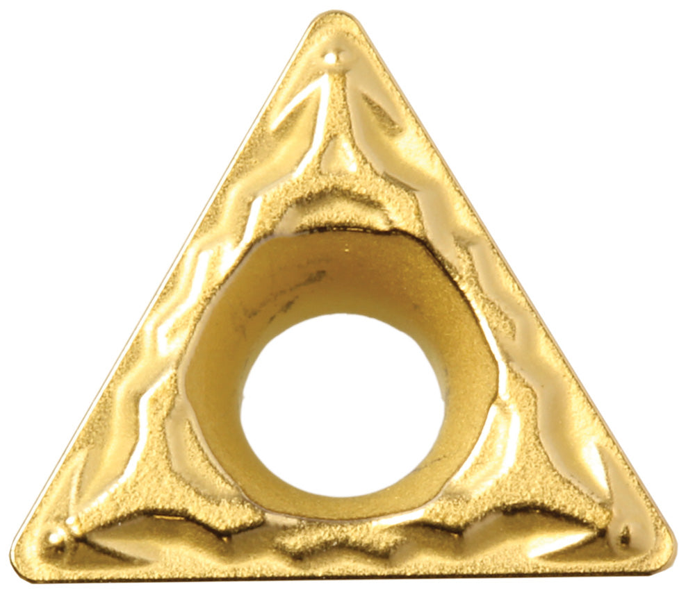 Triangle Insert 7DEG Positive Clearance Angle Chipbreaker & ISO Countersink one side, with hole .156" Inscribe Circle Size 5/64" Thickness .008" Corner Radius UD51 Grade. Factory Stock (MI)