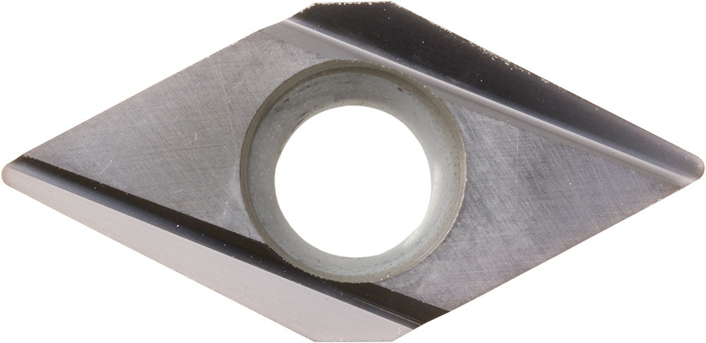 Kyocera VBMT 3305VF CCX Grade CVD Cermet, 5 Degree, Diamond, Positive Rake Angle, Neutral Turning Insert for Continuous and Finishing in (P) Carbon/Alloy Steel and (K) Gray Cast Iron, (K) Nodular Cast Iron
