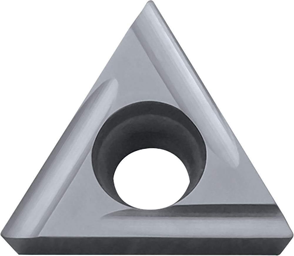 Triangle Insert 7DEG Positive Clearance Angle Chipbreaker & ISO Countersink one side, with hole .156" Inscribe Circle Size 5/64" Thickness .008" Corner Radius UD51 Grade. Factory Stock (MI)
