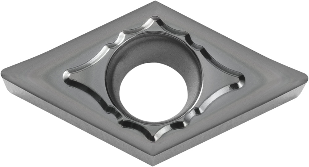 Kyocera DCMT 3251PP CCX Grade CVD Cermet, 7 Degree, Diamond, Positive Rake Angle, Neutral Turning Insert for Continuous and Finishing in (P) Carbon/Alloy Steel and (K) Gray Cast Iron, (K) Nodular Cast Iron