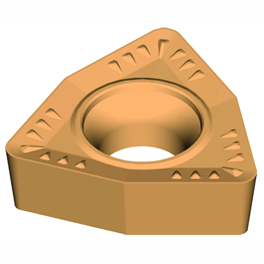 80DEG Trigon Insert 7DEG Positive Clearance Angle Chipbreaker & ISO Countersink one side, with hole .250" Inscribe Circle Size 3/32" Thickness .015" Corner Radius UD52 Grade. Factory Stock (MI)