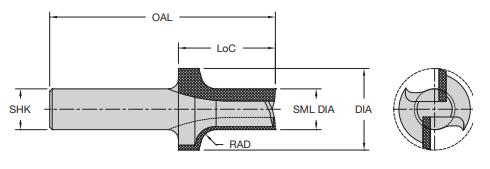 Onsrud 40-52 1-1/8 CT ST "V" DOUBLE EDGE RND & ROU