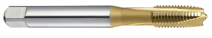 YG 3/8-24 H3 Synchro TIN Coated PM Spiral Point Plug Tap with 4-5 Pitch Lead. Can be run at 2-3 times faster in a Synchro Tap Holder but will also improve Tap Life in a Rigid Holder at Same Speed.