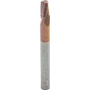 #Flutes:3, Cut Dia:0.25", Cutter Len:0.39", Grade:MT7, IN-RH/LH, Matl:Carbide, Overall Len:2.5", Pitch:27.00 TPI, Shank Dia:(1/4)", Thread Form:NPTF, Thread Standard:(1/8)
