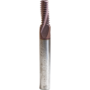 Hill Inventory: 0#Flutes:3, Cut Dia:0.276", Cutter Len:0.68", Grade:MT7, IN-RH/LH, Matl:Carbide, Overall Len:2.5", Pitch:01.50mm, Shank Dia:(5/16)", Thread Form:ISO, Thread Standard:M10,M12
