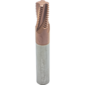 YG 1/2 and 3/4 NPTx14TPI x 0.495 Diameter x 0.875 LOC x 0.5 Shank Diameter x 3.5 OAL x 4 Flutes Carbide ALTIN Coated Thread Mill