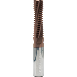 Hill Inventory: 0#Flutes:4, Cut Dia:14.0mm, Cutter Len:48.8mm, Grade:MT7, IN-RH/LH, Matl:Carbide, Overall Len:105mm, Pitch:02.50mm, Thread Standard:M18,M20