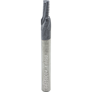 Hill Inventory: 0IN-SHANK W-OUT COOL FOR ISO (METRIC) INT-RH&LH THREAD, PITCH: 01.00mm, SHANK D: 0.250", CUT L: ~0.4" (~10.2mm), FLUTES: 3, GRADE: MT7,