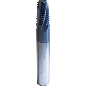 YG 1/4 and 3/8 NPTFx18TPI x 0.305 Diameter x 0.625 LOC x 0.312 Shank Diameter x 3 OAL x 4 Flutes Carbide ALTIN Coated Thread Mill
