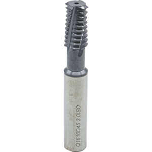 Hill Inventory: 0#Flutes:4, Cut Dia:0.63"/16.0mm, Cutter Len:1.77"/45.0mm, Grade:MT7, IN-RH/LH, Matl:Carbide, Overall Len:4.1"/105mm, Pitch:03.00mm, Thread Form:ISO, Thread Len:1.18"/30.0mm, Thread Standard:M22