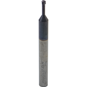 Hill Inventory: 0#Flutes:3, Cut Dia:0.126", Grade:MT9, IN-RH/LH, Matl:Carbide, Neck Len:0.37", Overall Len:2.5", Pitch:32.00 TPI, Shank Dia:(1/4)mm, Thread Dep:2.0xD1, Thread Form:UN, Thread Standard:8
