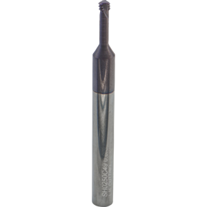 Hill Inventory: 0#Flutes:3, Cut Dia:0.15", Grade:MT9, IN-RH/LH, Matl:Carbide, Neck Len:0.49", Overall Len:2.5", Pitch:00.80mm, Shank Dia:(1/4)mm, Thread Dep:2.0xD1, Thread Form:ISO, Thread Standard:M5