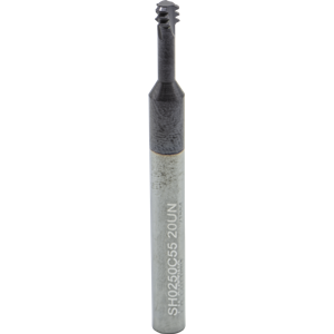Hill Inventory: 0#Flutes:3, Cut Dia:0.187", Grade:MT9, IN-RH/LH, Matl:Carbide, Neck Len:0.55", Overall Len:2.5", Pitch:20.00 TPI, Shank Dia:(1/4)mm, Thread Dep:2.0xD1, Thread Form:UN, Thread Standard:(1/4)