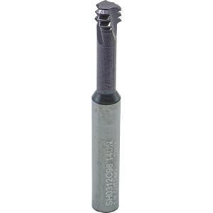 Hill Inventory: 0#Flutes:3, Cut Dia:0.303", Grade:MT9, IN-RH/LH, Matl:Carbide, Neck Len:0.98", Overall Len:2.5", Pitch:14.00 TPI, Shank Dia:(5/16)mm, Thread Dep:2.0xD1, Thread Form:UN, Thread Standard:(7/16)