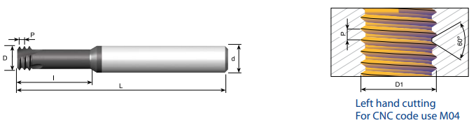 #Flutes:3, Cut Dia:6.0mm, Grade:MT7, IN-RH/LH, Matl:Carbide, Neck Len:24.0mm, Overall Len:58mm, Pitch:01.25mm, Thread Dep:3.0xD1, Thread Standard:M10,M12,M8
