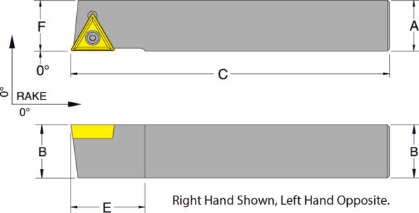 51558 STACR08-2J. Pos Triangle Toolholder RH. Style A, 0DEG TCMT 1/4 I.C.